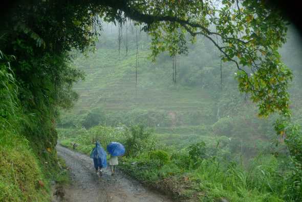 rice terraces through the fog. And it rained.